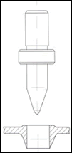 The long Fdrill has a long parallel body designed to produce a hole that is cylindrical for the entire bush length. Material that is backward extruded is rolled into a rim by the Flowdrill collar, ( L = LONG )*