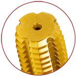 Our roll forming taps (Ftaps) are made of high quality high-speed steel and can be ordered with lubrication grooves and coatings for special applications. The square shaft at the end is optimally designed to transfer the required torque to form the threads.