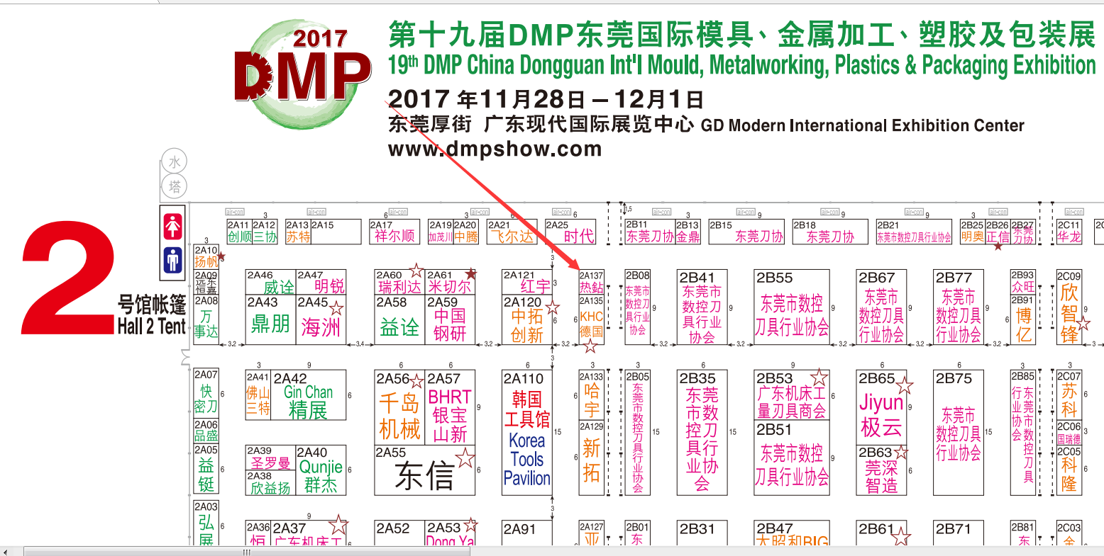株洲熱鉆參加2017年DMP東莞國(guó)際模具、金屬加工展覽會(huì),展位號(hào):2A137,展會(huì)地址:東莞厚街,時(shí)間:2017年11月28日至2017年12月1日,歡迎新老客戶(hù)蒞臨展位洽談。