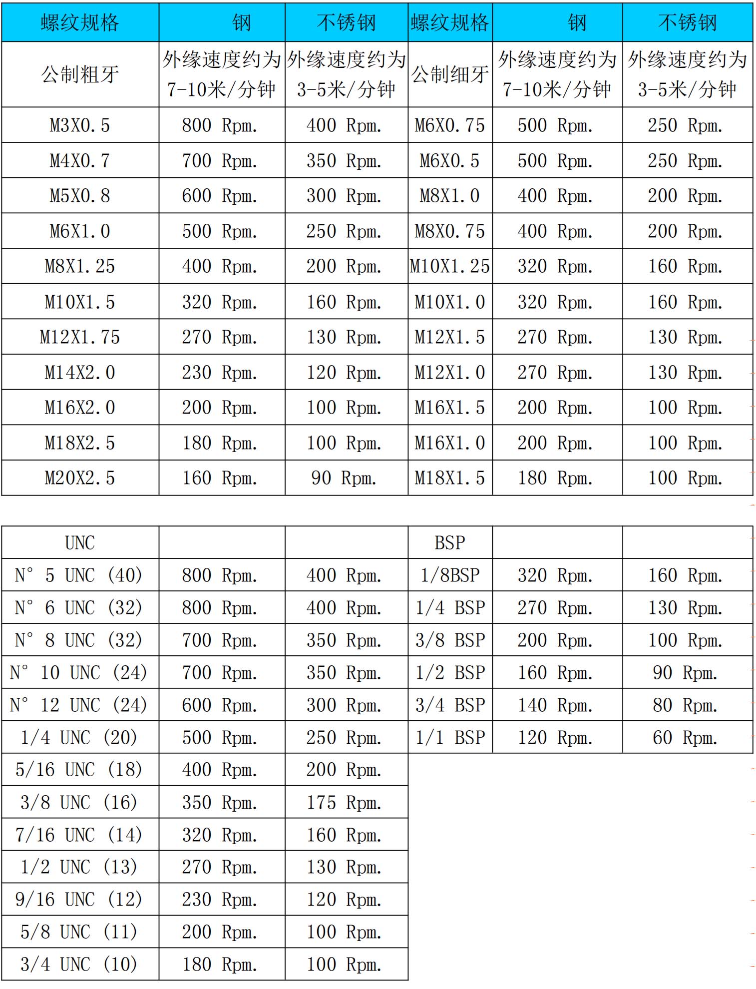 擠壓絲錐攻絲轉(zhuǎn)速選擇表
